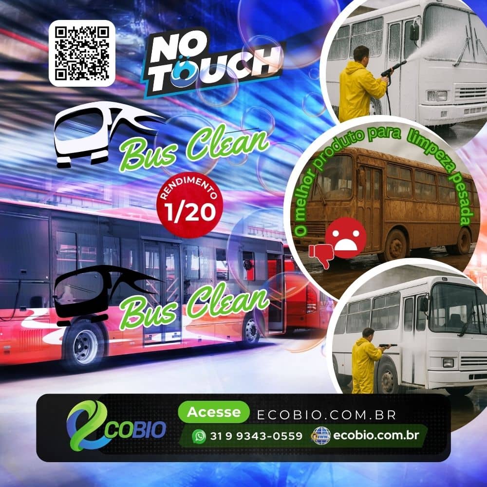 -9%🚍✨ NoTouch Bus Clean – Limpeza Profissional para Transporte Coletivo O NoTouch Bus Clean foi desenvolvido especialmente para transportadoras, empresas de ônibus e frotas de veículos pesados. Com fórmula de alta performance, remove sujeira pesada com facilidade e sem necessidade de esfregar, proporcionando agilidade e economia na manutenção da frota. ✅ Benefícios 🧽 Touchless: limpeza sem esfregar, reduz tempo e esforço da equipe ⏱️ Rápido: ação eficaz em até 90 segundos 🌱 Biodegradável: não agride o meio ambiente 🔥 Seguro: não inflamável e de fácil manuseio 💸 Alto rendimento: diluição de até 1:20, ideal para frotas de grande porte 🚌 Versátil: indicado para ônibus, micro-ônibus, vans e utilitários de transporte coletivo 📦 Como Usar 1️⃣ Dilua 1 parte do produto em até 20 partes de água 2️⃣ Aplique com pulverizador ou máquina de alta pressão, de baixo para cima 3️⃣ Aguarde de 1 a 2 minutos 4️⃣ Enxágue com jato d’água ✨ Resultado: veículo limpo, protegido e com aparência renovada 📊 Ficha Técnica Nome comercial: NoTouch Bus Clean Aspecto: Líquido viscoso pH: 9,5 – 10,0 Registro ANVISA: 25351.842934/2021-03 Disponível em: Galão de 5 litros 🛡️ Segurança ✔ Produto de uso profissional ✔ Evite contato direto com os olhos ✔ Recomenda-se uso de luvas e óculos de proteção 📑 Faturamento e Contato Comercial Para solicitações de faturamento e condições especiais, fale com nossa equipe comercial da Ecobio: 📞 (31) 99343-0559 💬 WhatsApp: (31) 99343-0559 🌐 ecobio.com.br